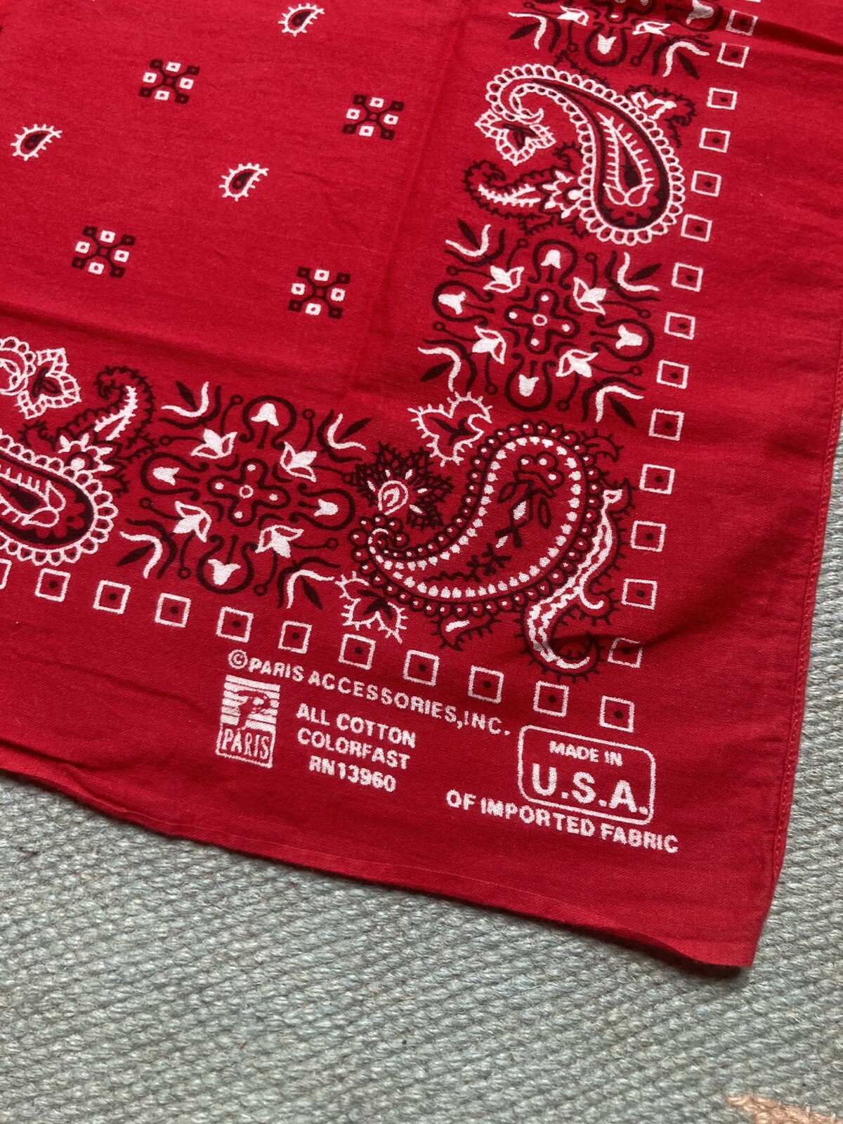 Vintage Paris bandana handkerchief fast color paisley red cotton soft USA made