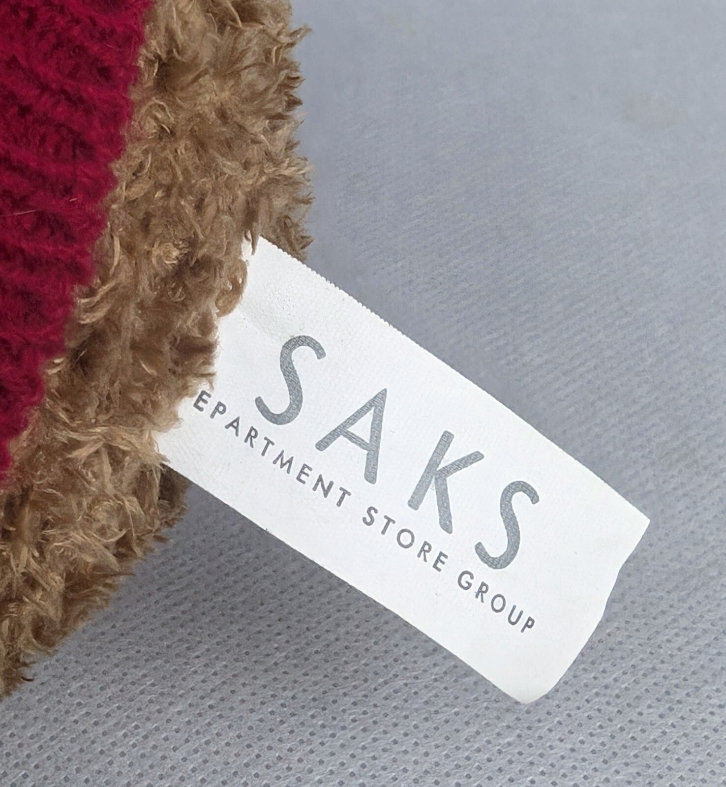 VTG Saks Fifth Avenue Teddy Bear In Red Flag Sweater 11 Plush Stuffed Animal