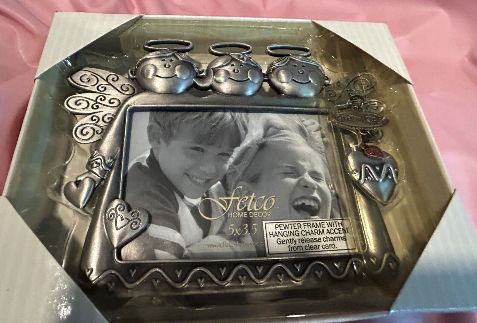 Grandkids/Angels Picture Frame pewter w/hanging charm for 3.5 x 5 Fetco - NIB