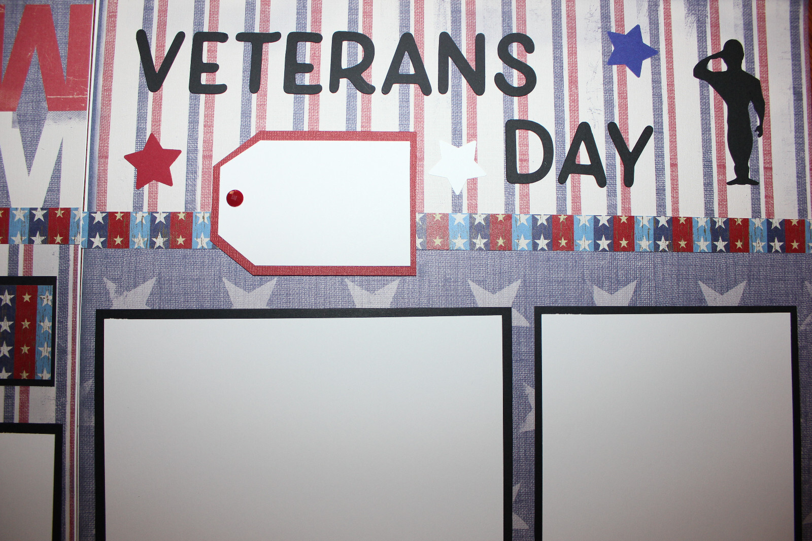 Veterans Day scrapbook pages 2 each 12 x 12 HAndmade photo ready military pages