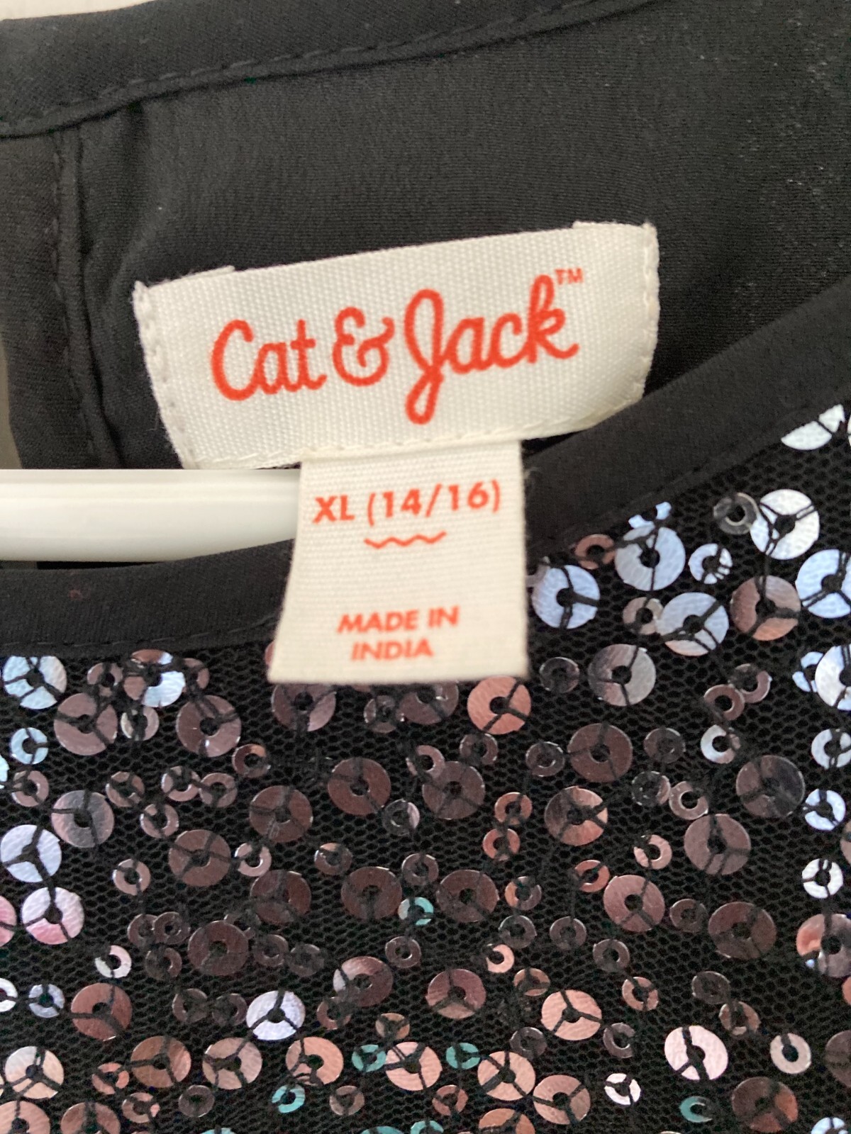 как выглядит Girls Long Black Sequin Dress Netting cap net sleeves Cat Jack sz XL 14-16 фото