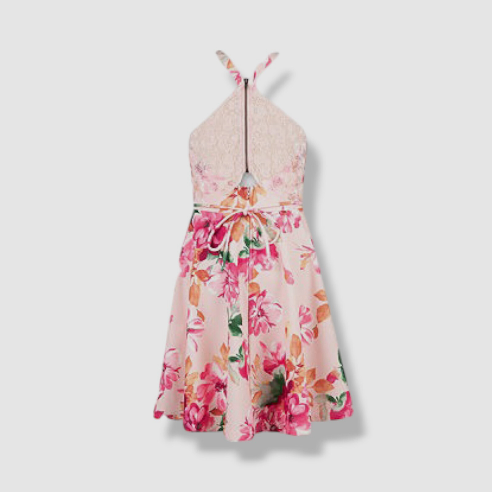 Speechless Kids Girl's Pink Floral Lace Round Neck Sleeveless Dress Size 14