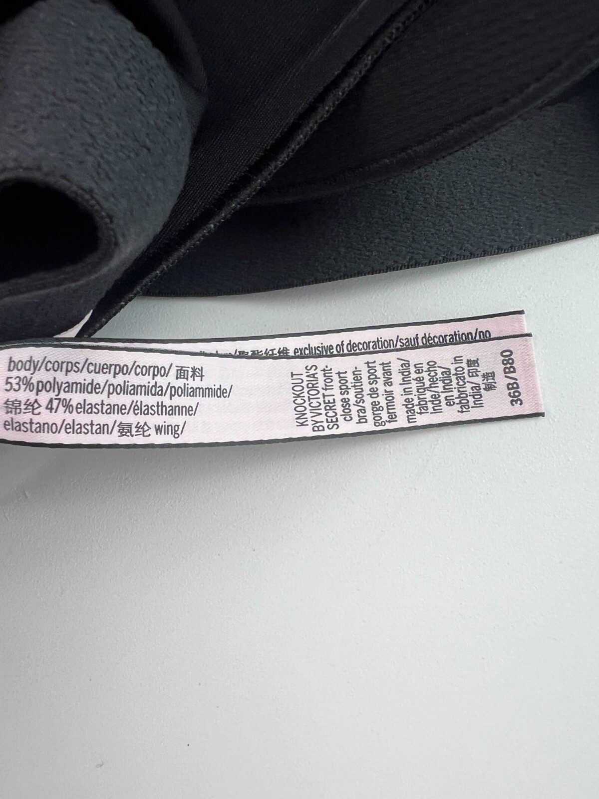 как выглядит Victorias Secret Knockout Front Close High Support Sport Bra Black 36B NWT фото