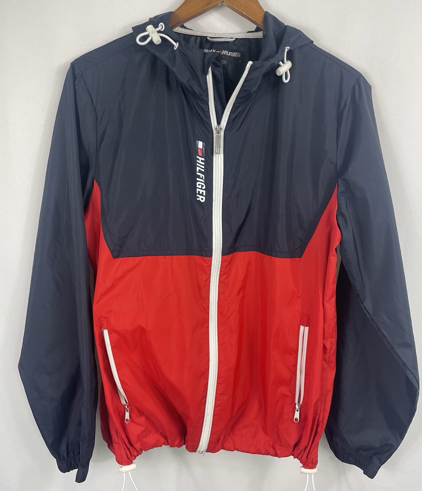 Tommy Hilfiger Men's MEDIUM Lightweight Full Zip Hooded Jacket Red White Blue