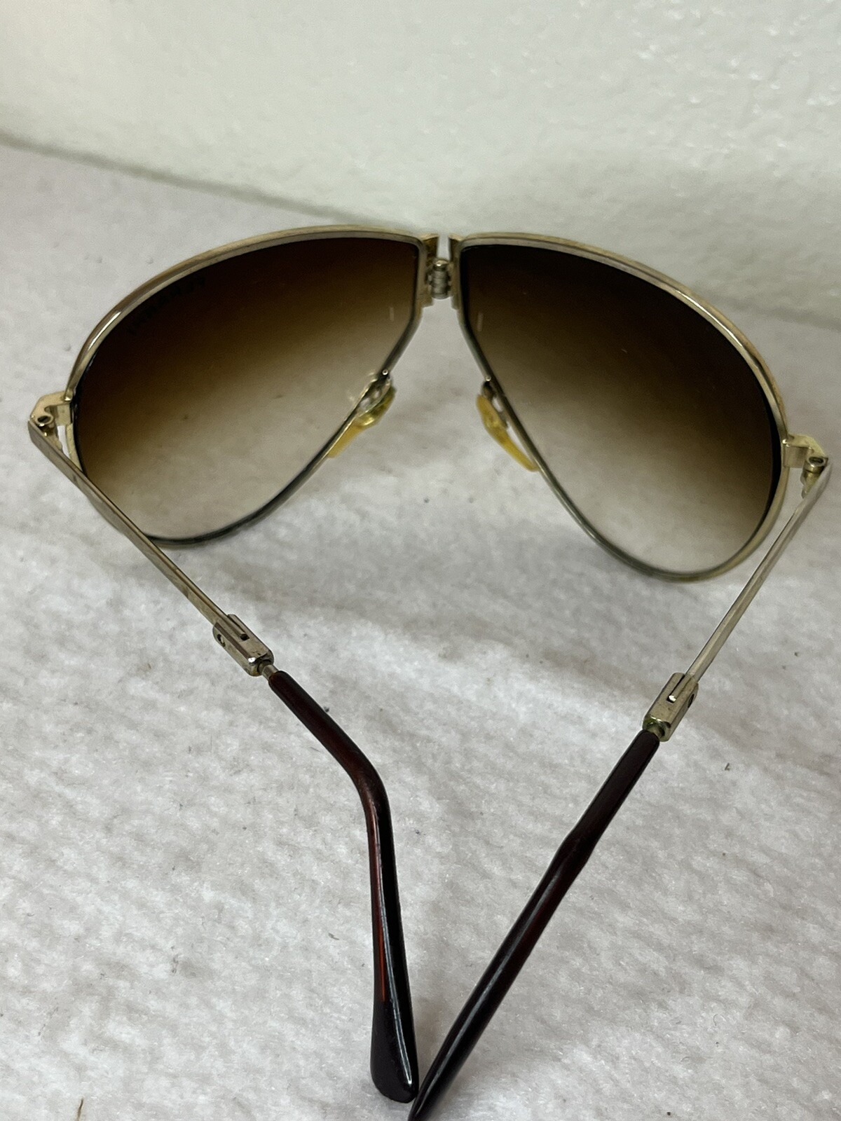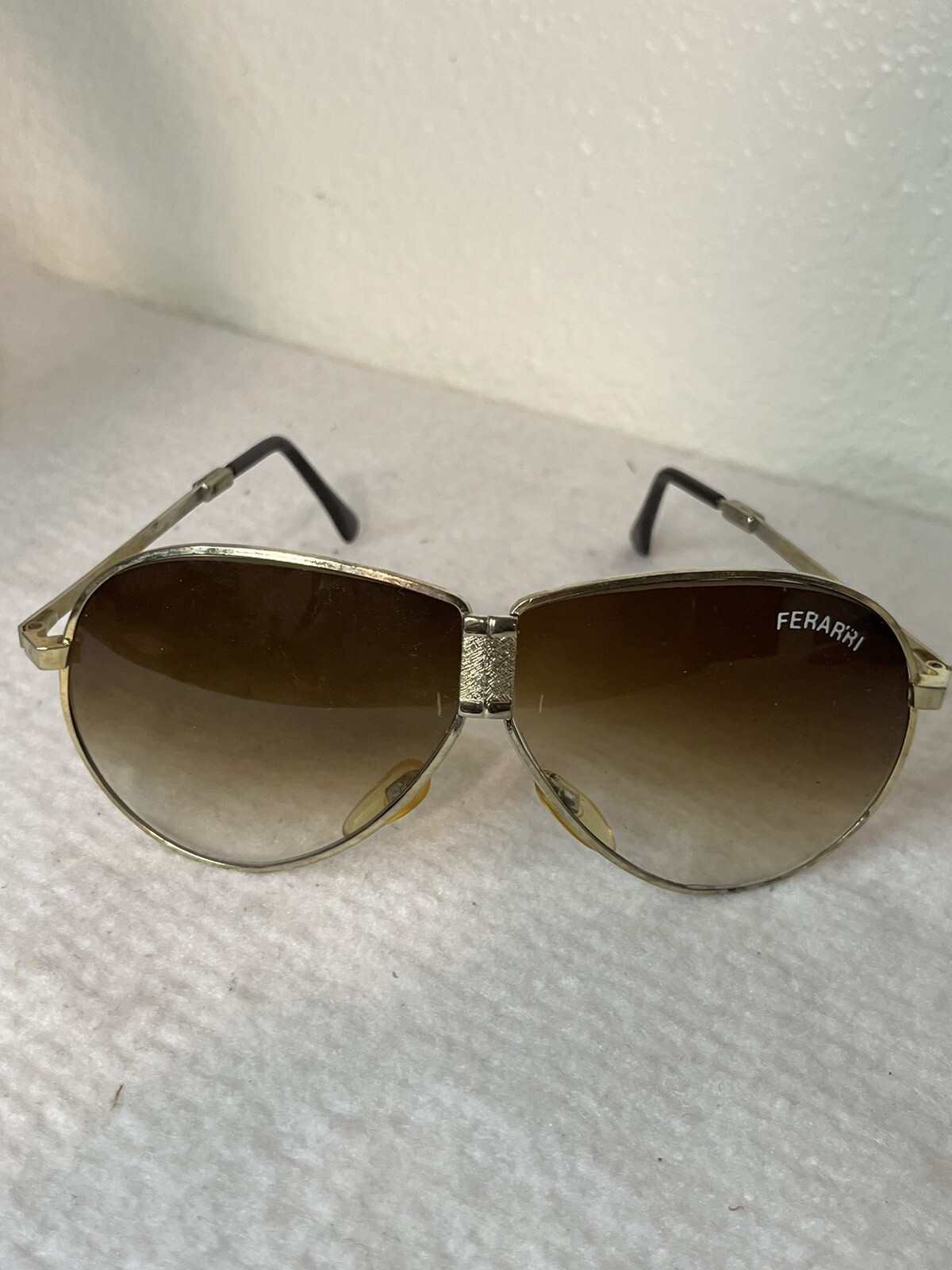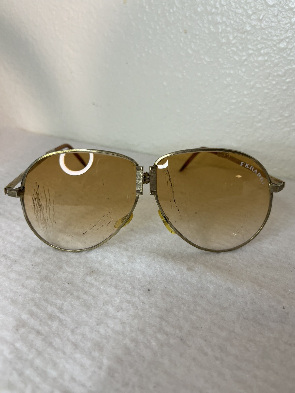 как выглядит VINTAGE 80s Ferrari Sunglasses Fold Out Gold Aviator W/ Case Lot of 2 фото