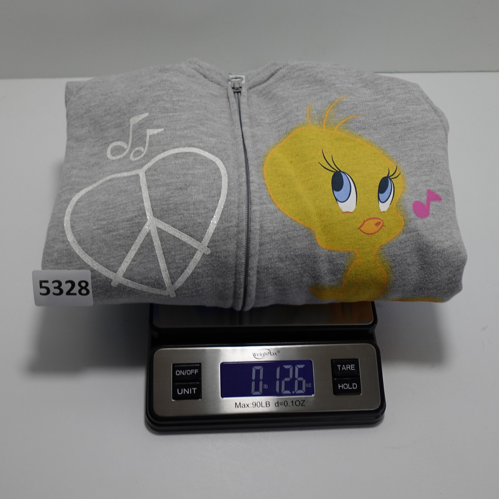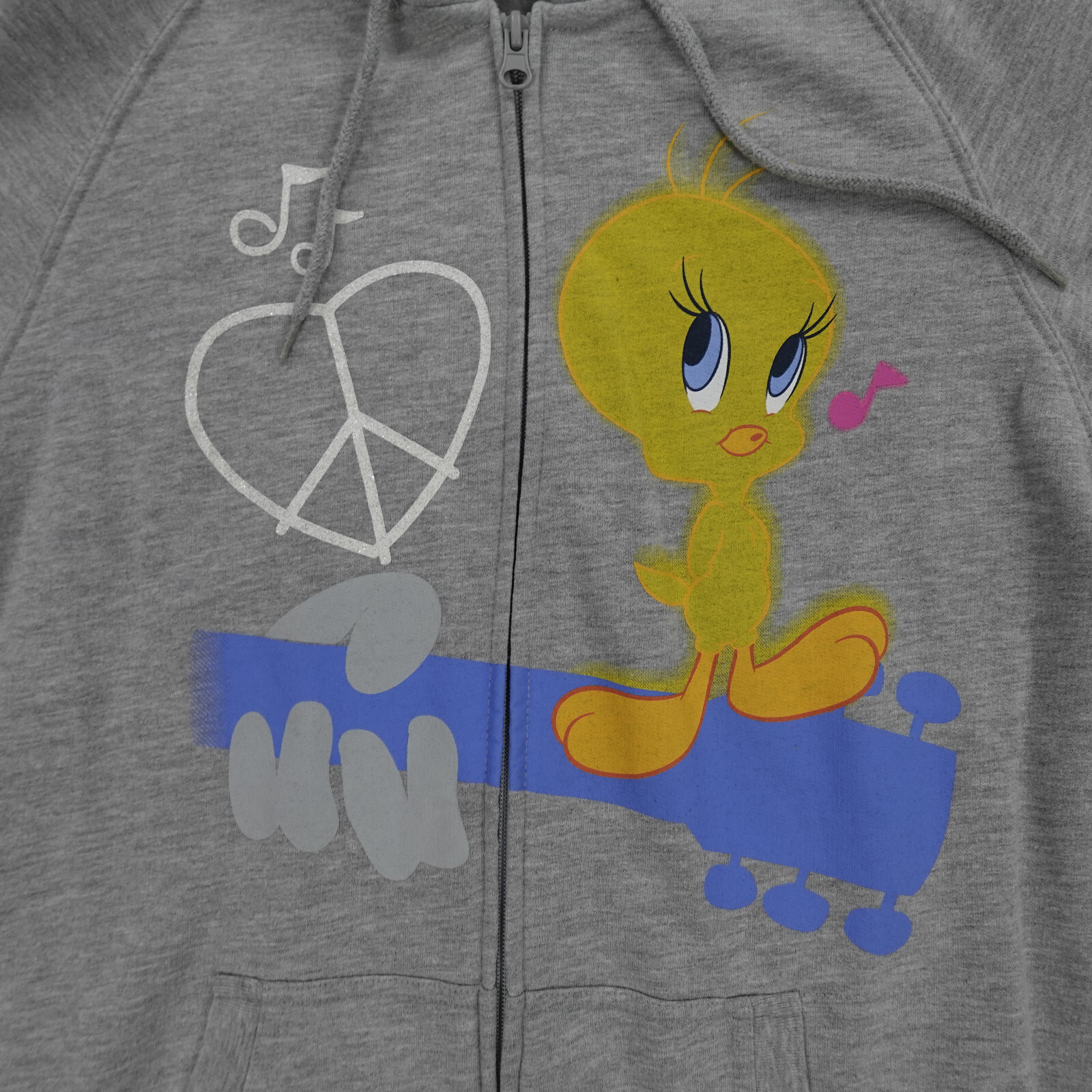 Tweety Bird Sweatshirt Girls Large Hoodie Zip Love Peace And Music Looney Tunes