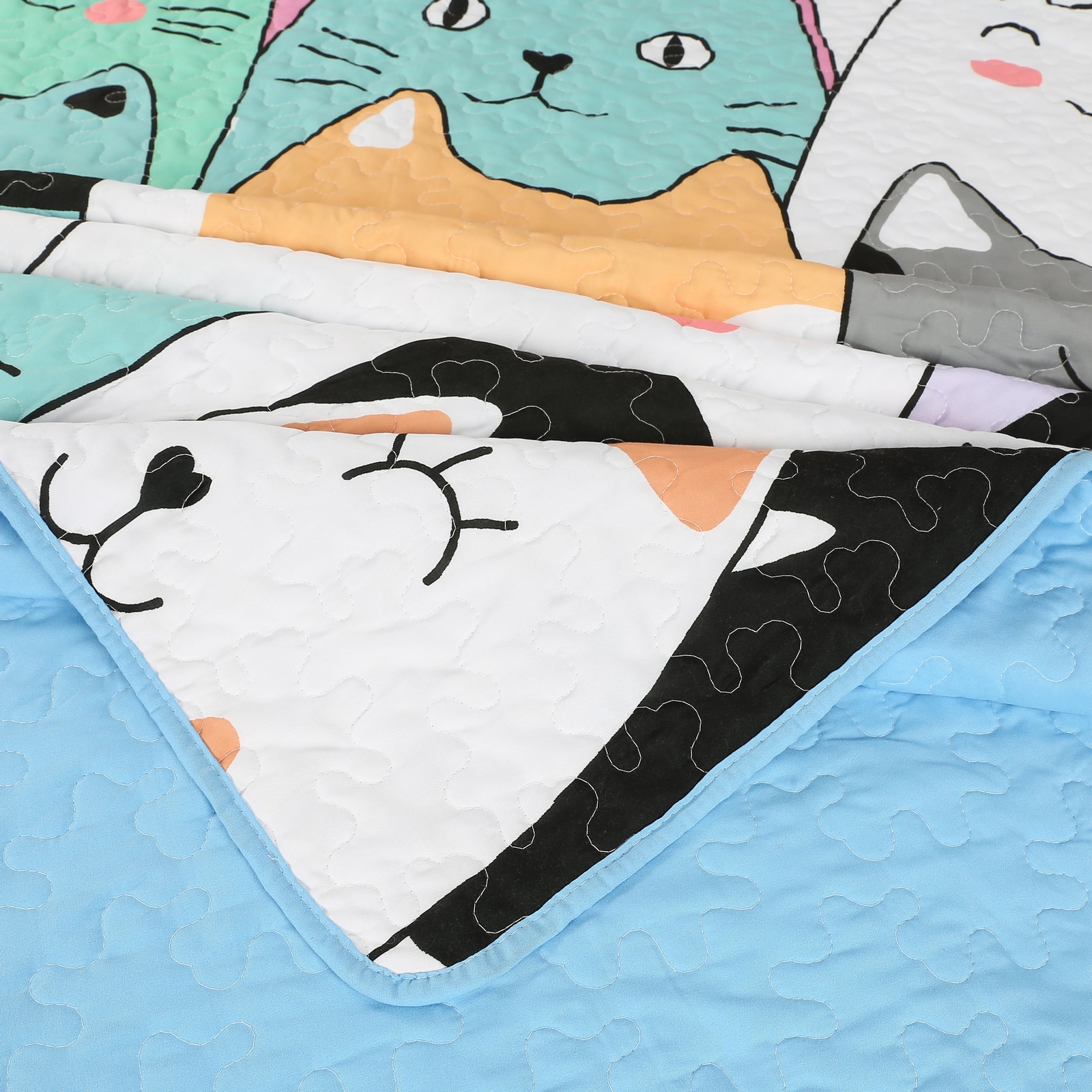 как выглядит Adorable Cat Quilt Bedspread Set Cozy and Fun Bedding for Bedroom WX202 фото