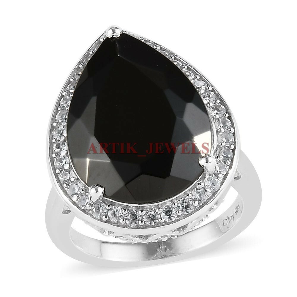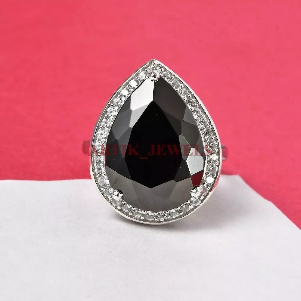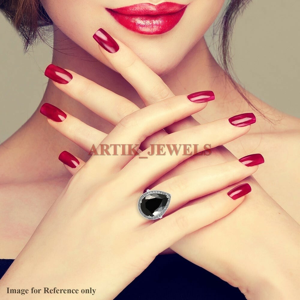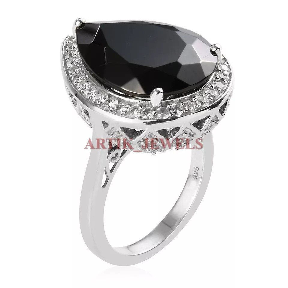 как выглядит Natural Black Onyx Gemstone with 14K White Gold Plated Silver Women