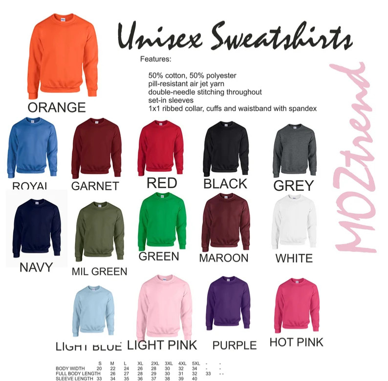 Personalization Instructions: Please leave: 1. Color of sweatshirt & writing . Please Specify glitter or plain writing. We will make it plain if you do not indicate it. 2. Any wording changes or we will make it as pictured.