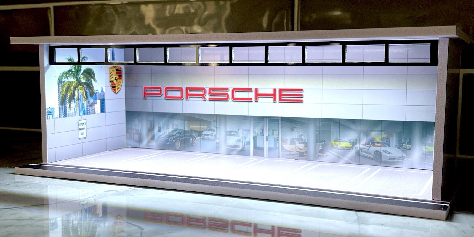 NEW Porsche Dealer Theme FOR Hot Wheels 1:64 Model Diorama Garage LED Lighting