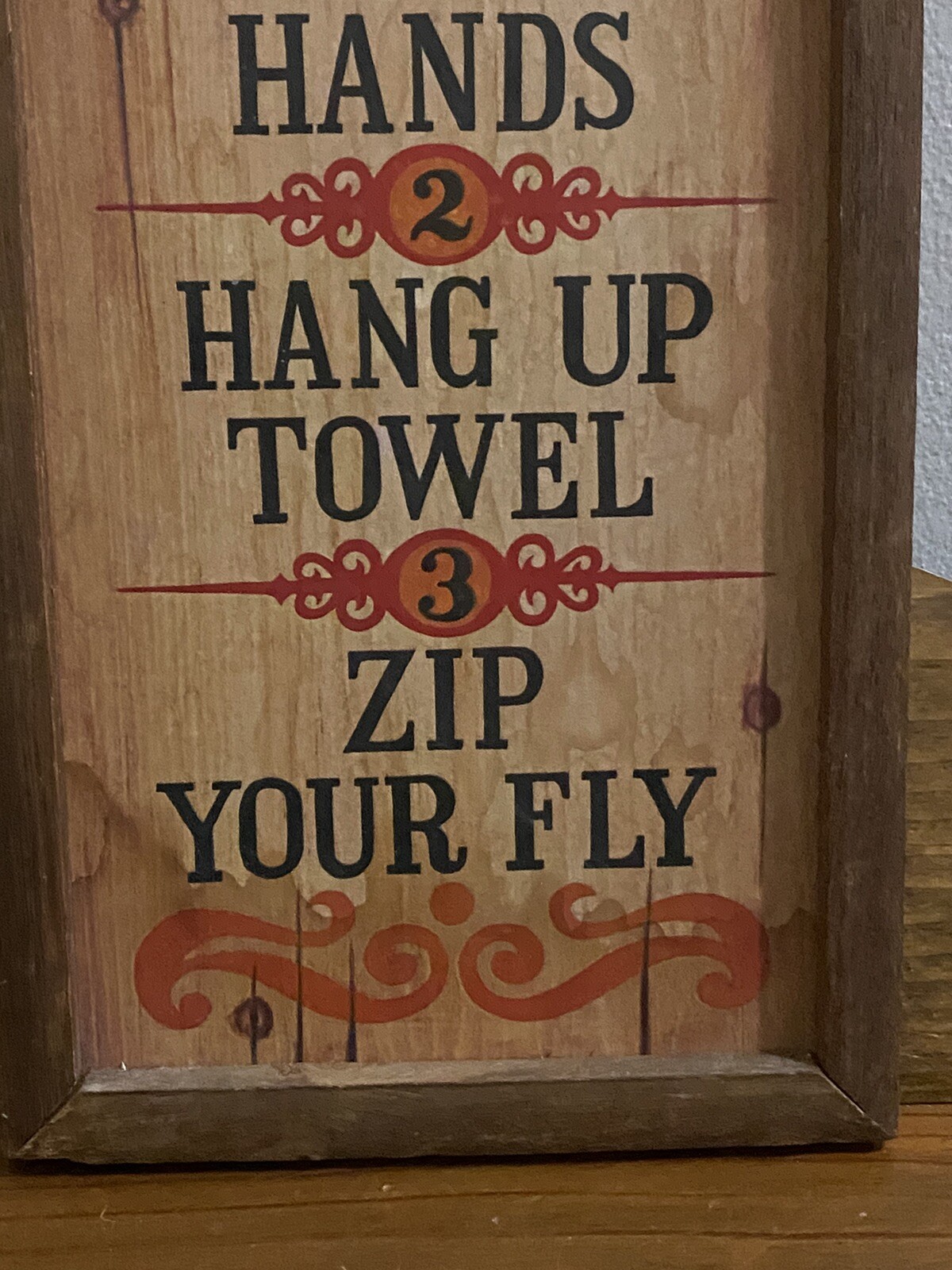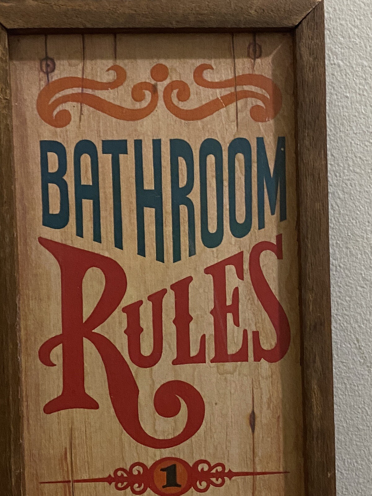 Bathroom Rules Sign,Wood Wall Art, Framed 19 Tall, x 6.5 Wide,