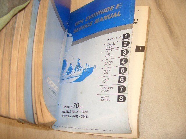 как выглядит 1974 Evinrude service manual lot boat motor binder 2 thru 70 hp фото