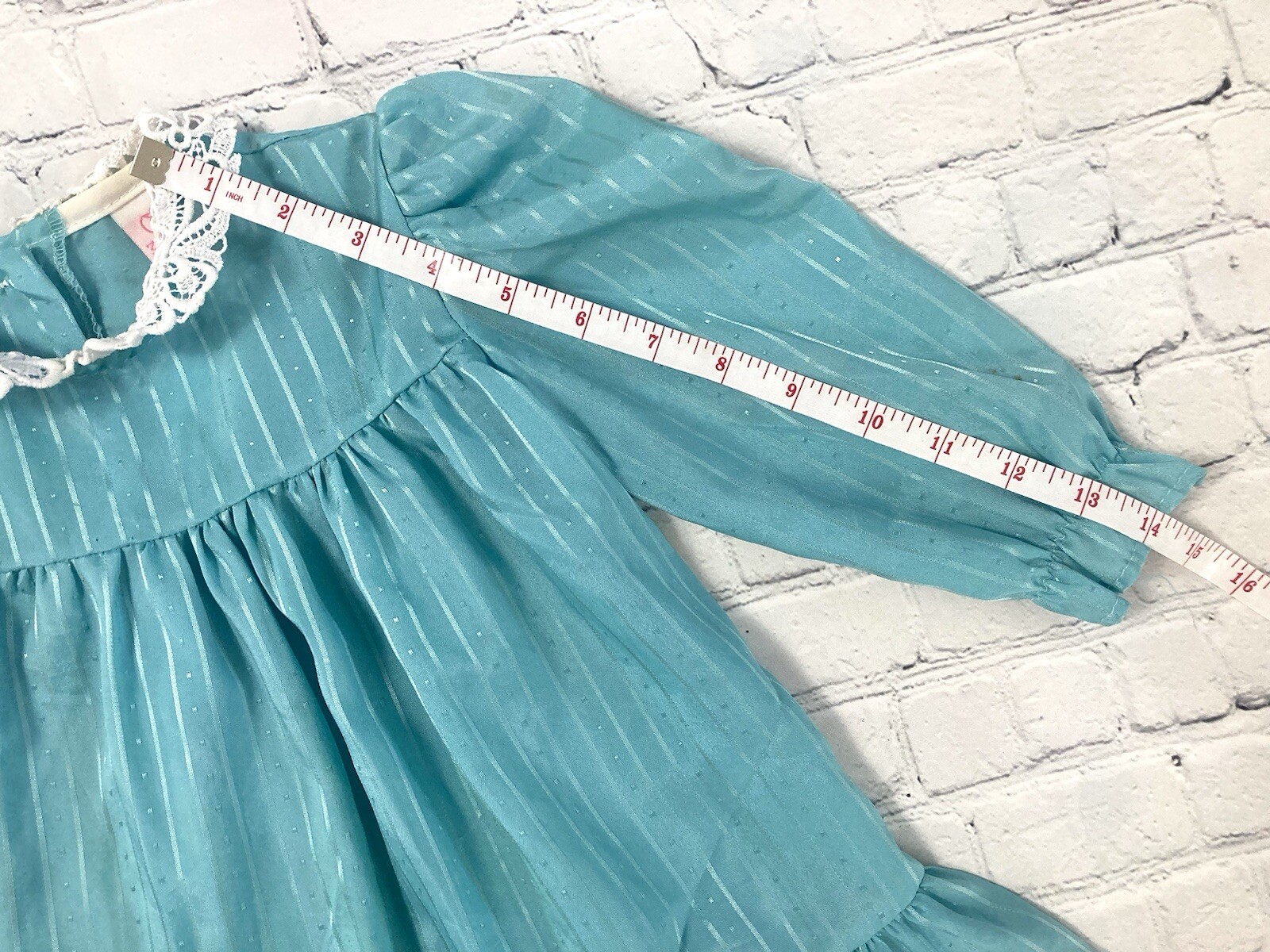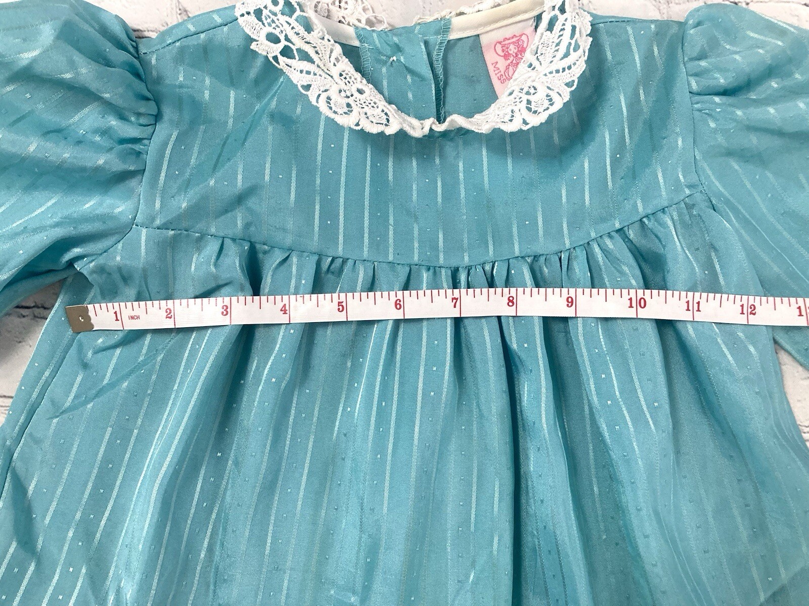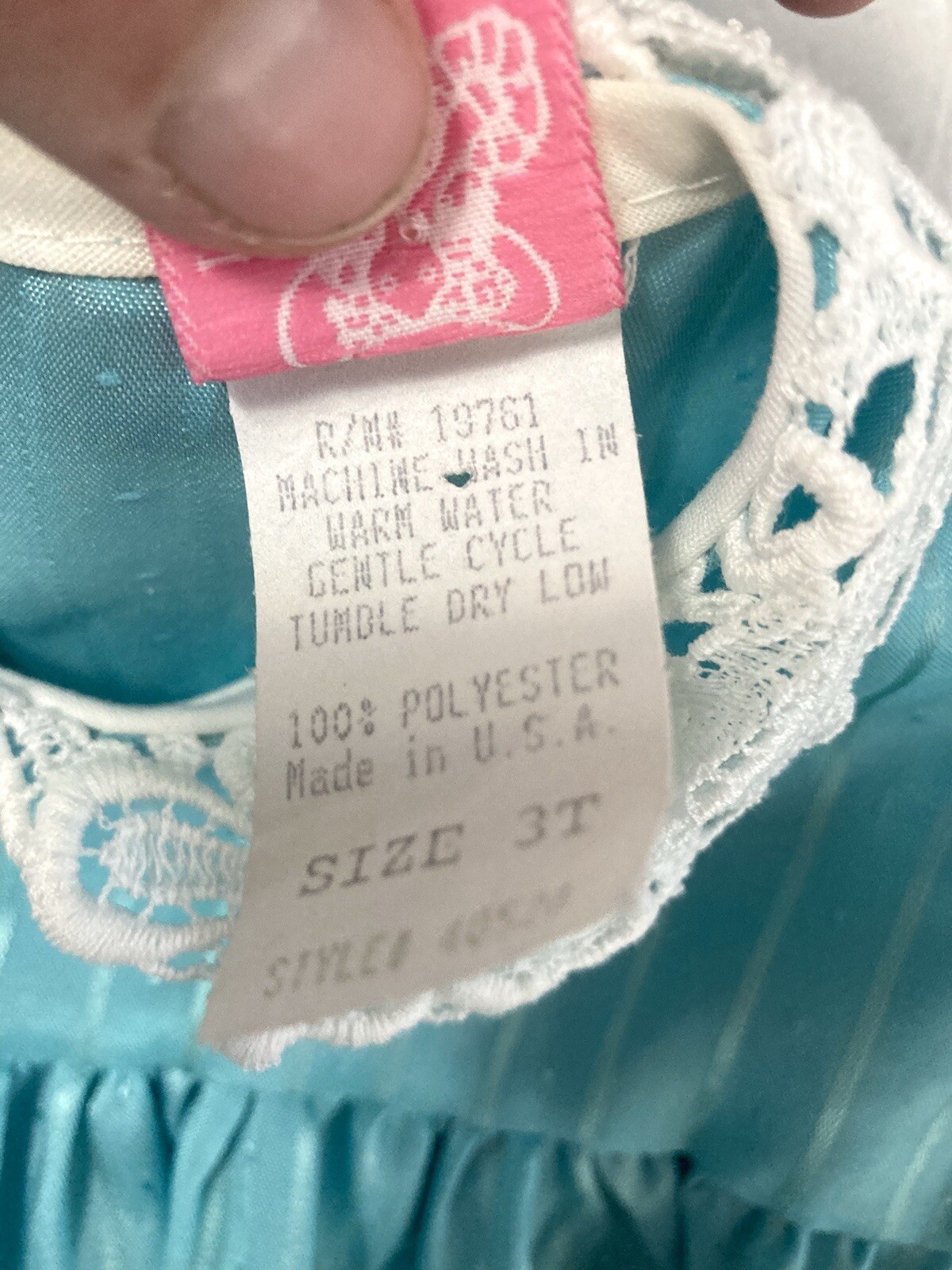 как выглядит Vtg Miss Quality Girls 3T Turquoise Blue Dress Lace Made In USA Cottage Core фото
