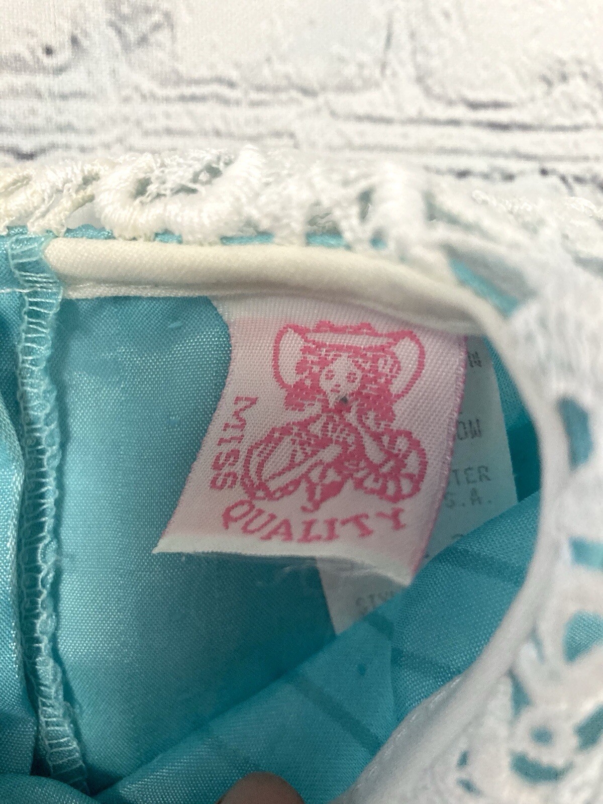Vtg Miss Quality Girls 3T Turquoise Blue Dress Lace Made In USA Cottage Core