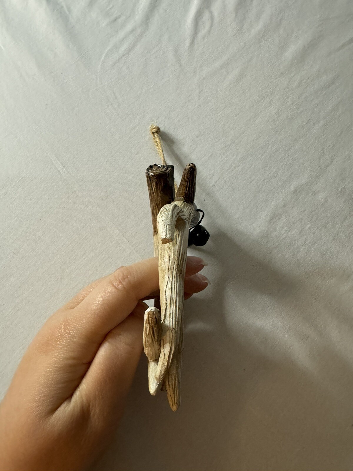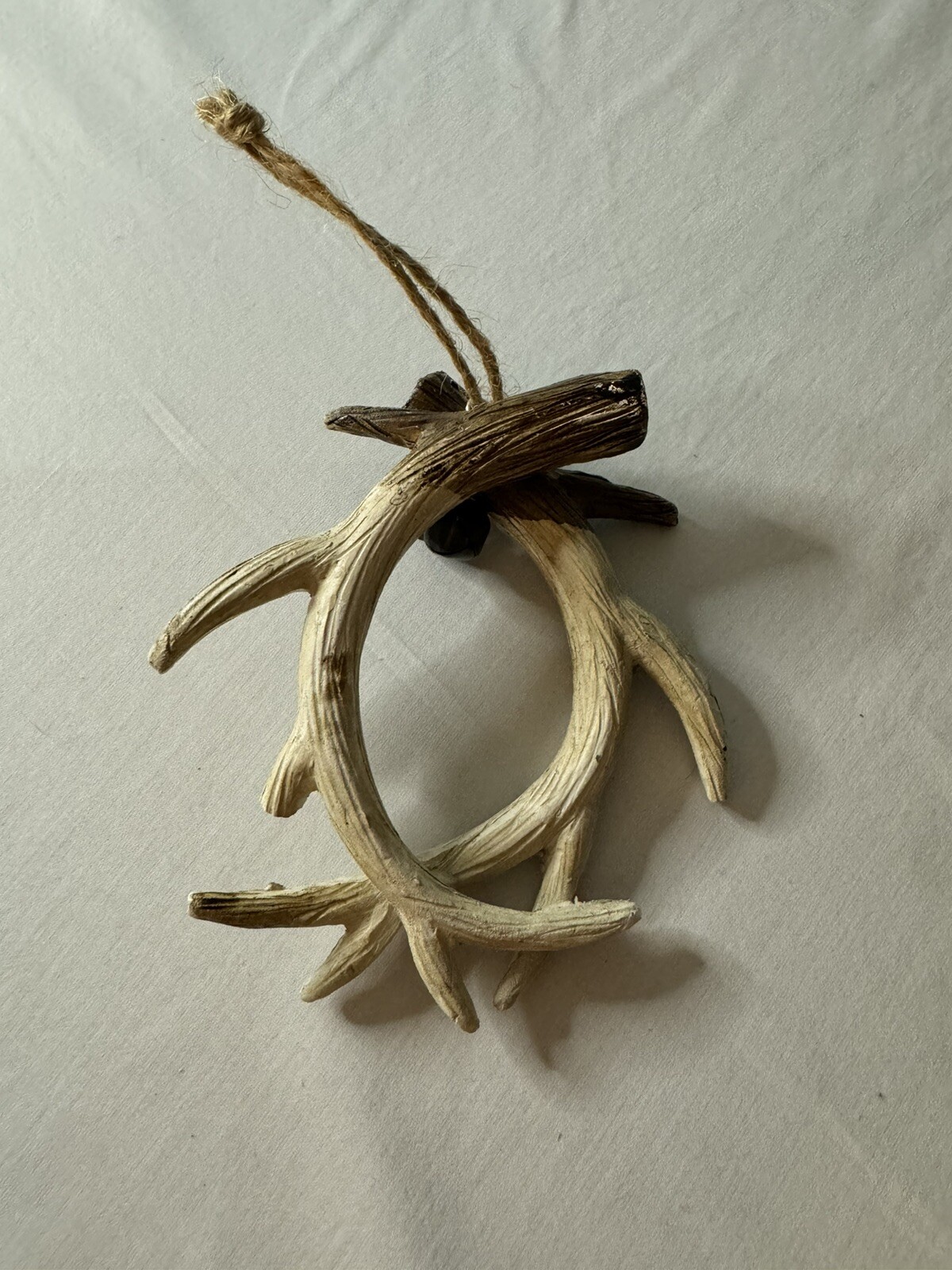 Holiday Time Country Christmas Double Antler Ornament w/ Jingle Bells Xmas Faux