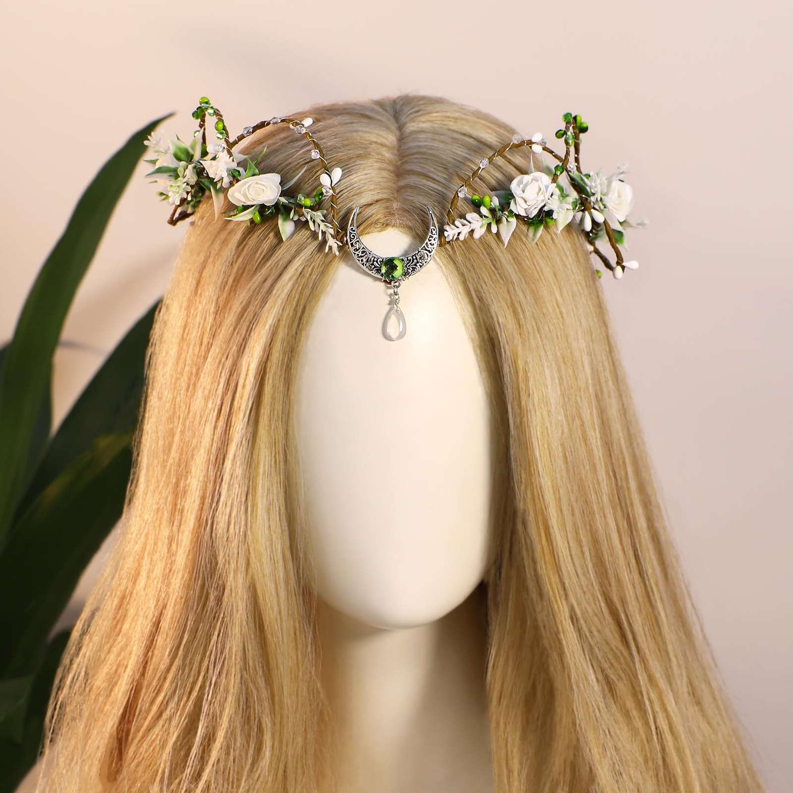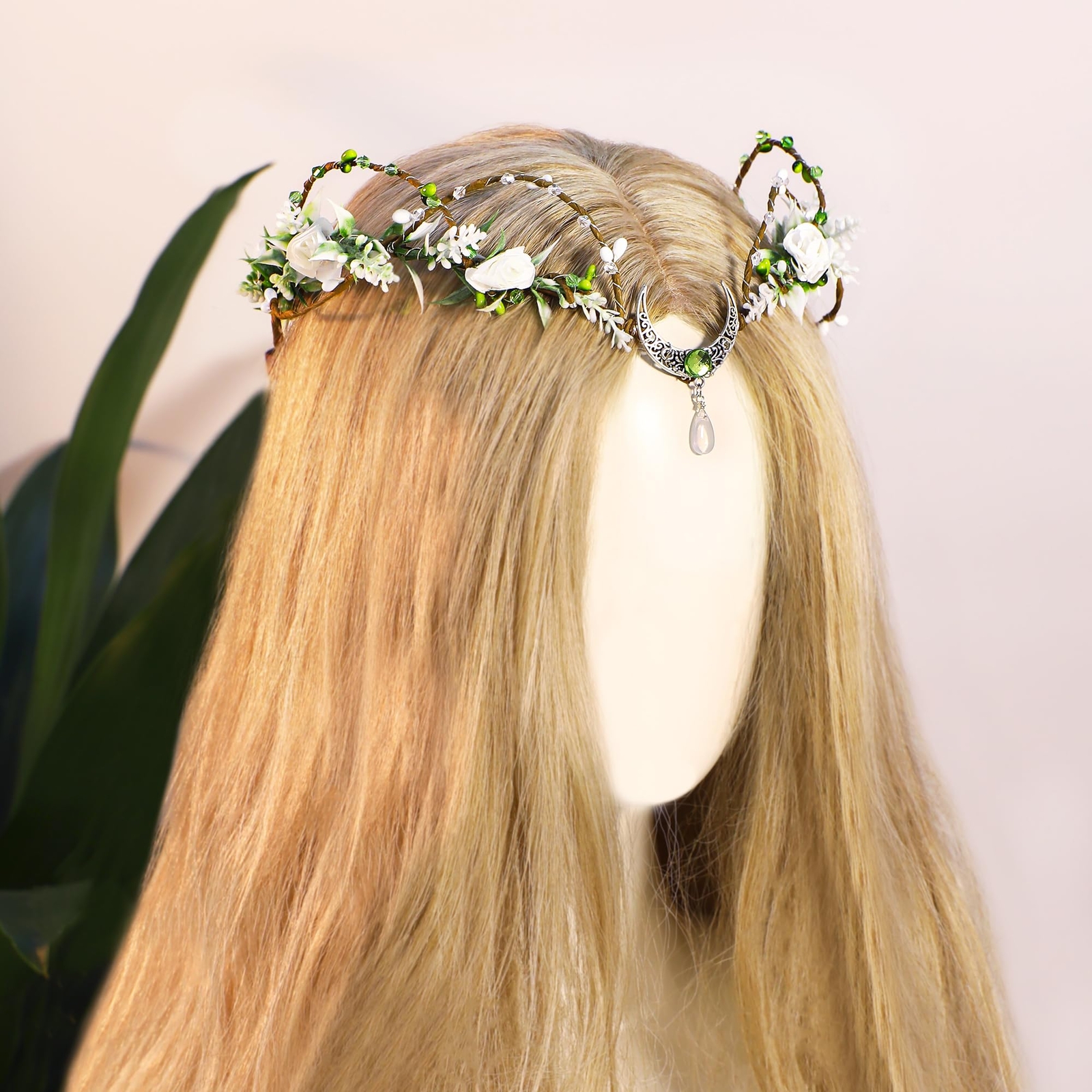 White Flower Fairy Crown - Woodland Floral Circlet Forest Elf Crown Elven Hea...