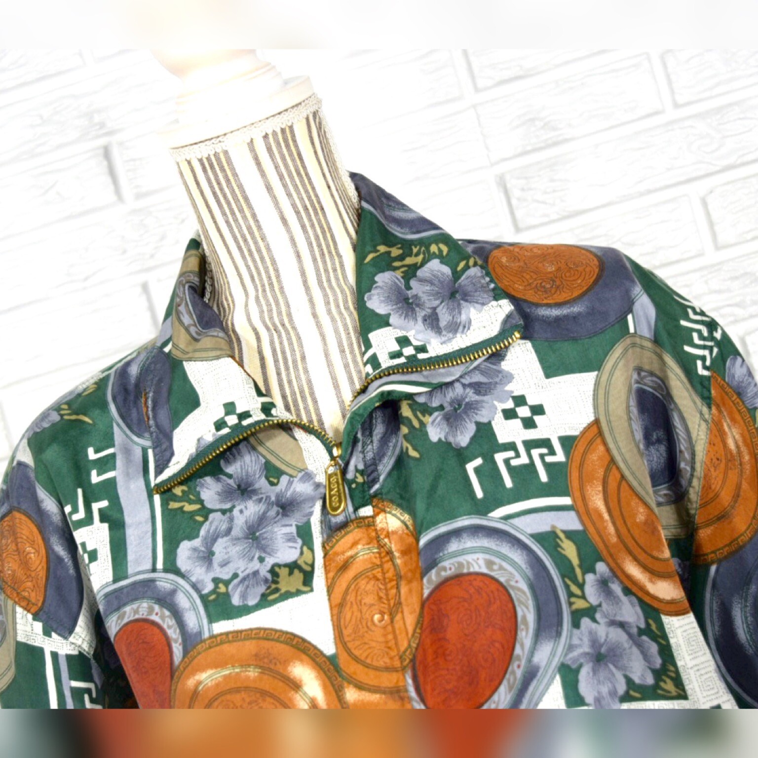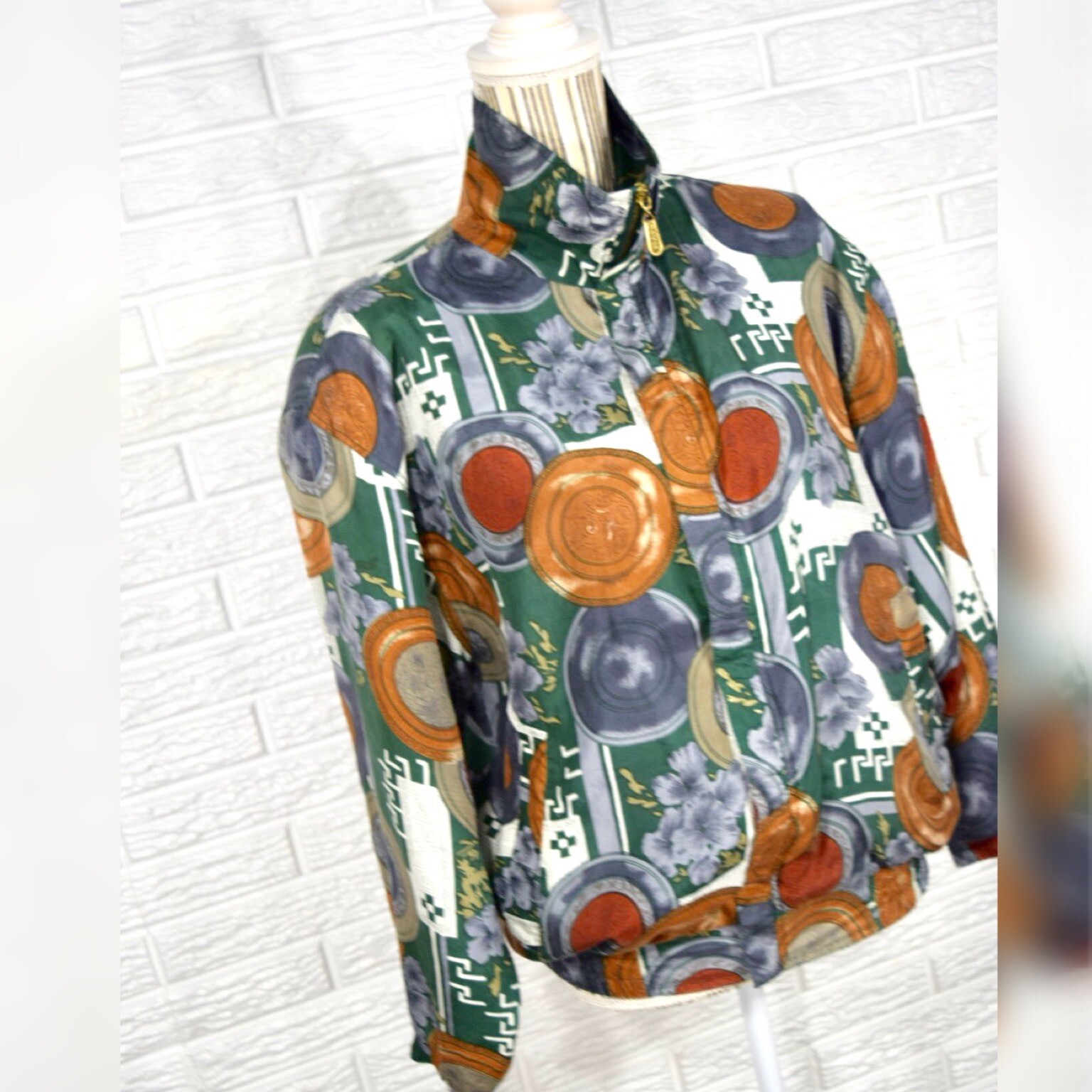 как выглядит Vintage Coaco Multicolored Patterned Silk Jacket Lightweight Size Small фото