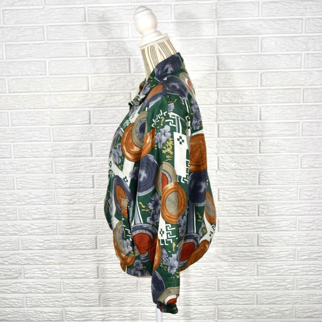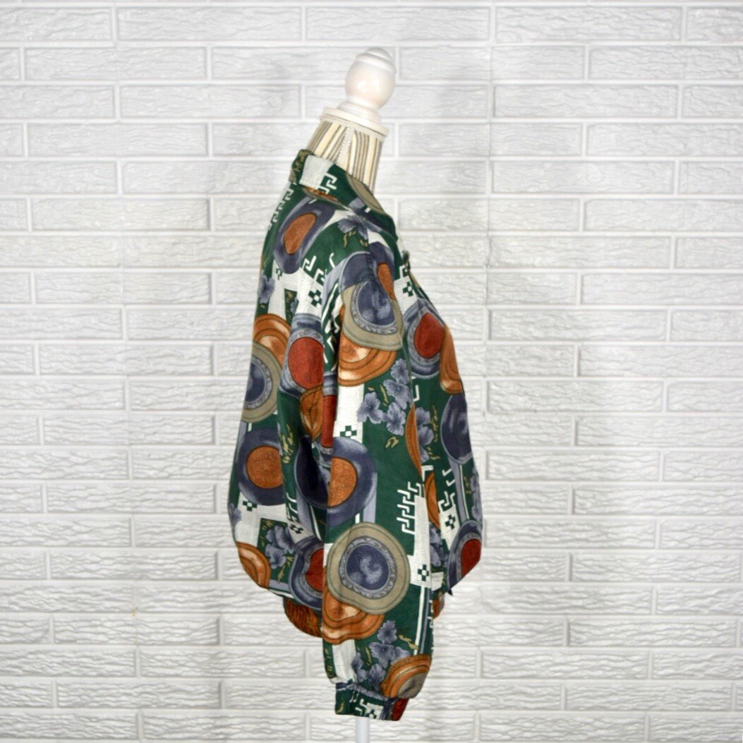Vintage Coaco Multicolored Patterned Silk Jacket Lightweight Size Small