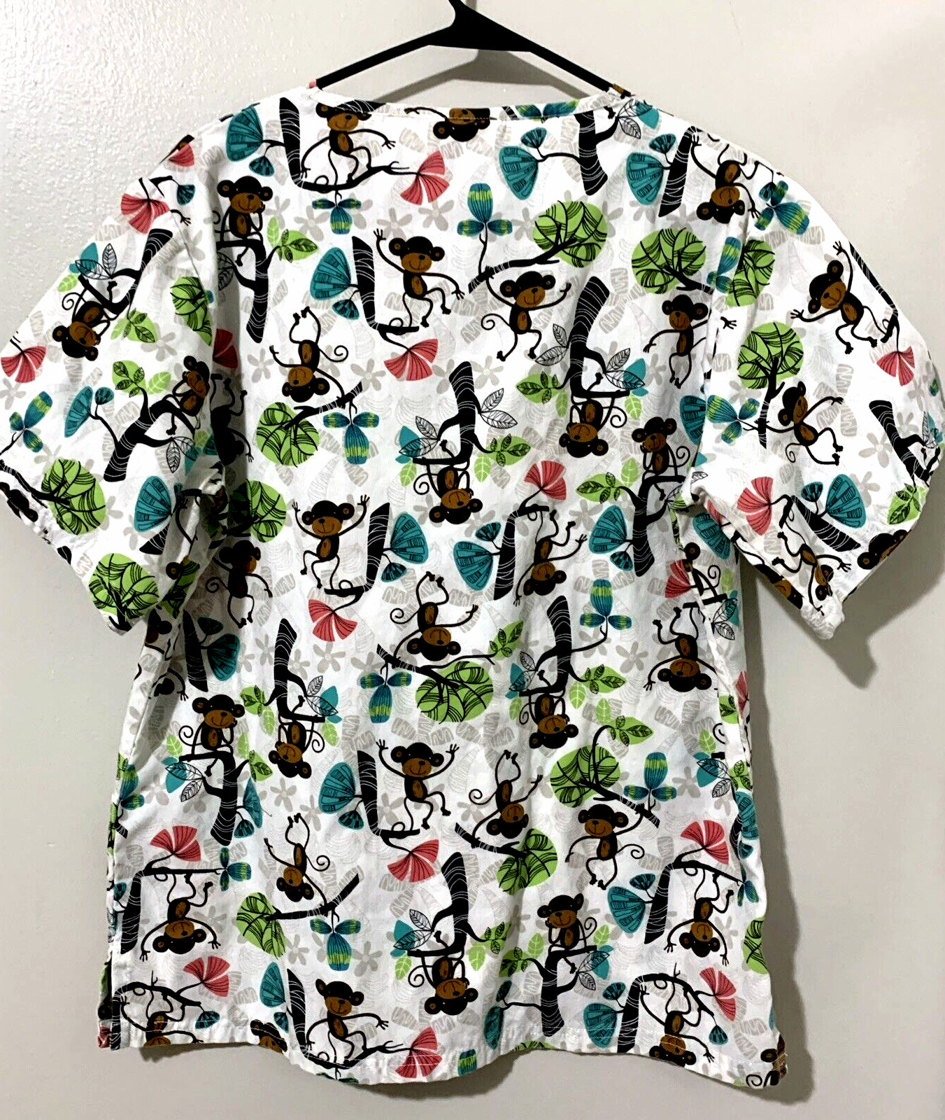 как выглядит U A. SCRUBS Scrub Top Monkey in Trees Pattern SMALL Cotton Blend Pullover фото