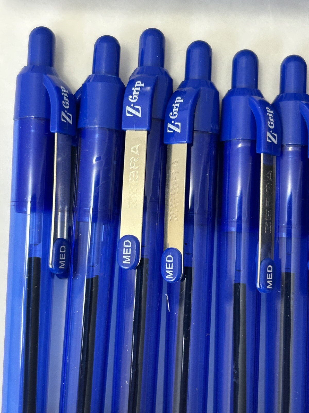 New Zebra Z-Grip Retractable Ballpoint Medium Pen 1.0mm Blue Ink 12-pack 22220