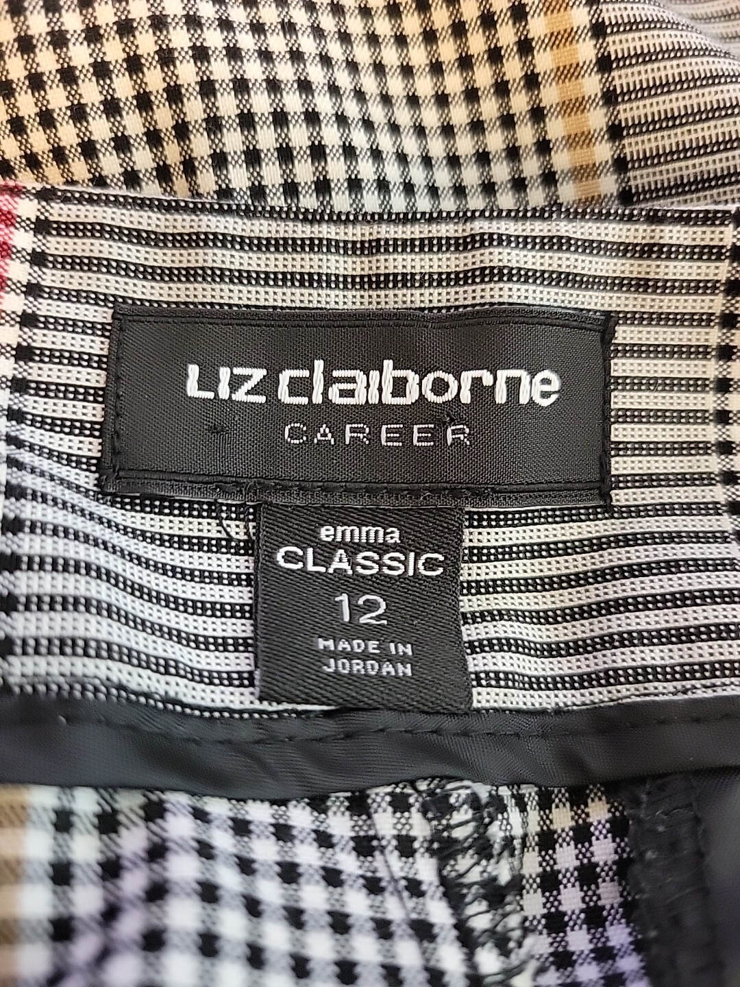 Liz Claiborne Emma Classic Gray Plaid Mid Rise Straight Leg Trousers Women's 12