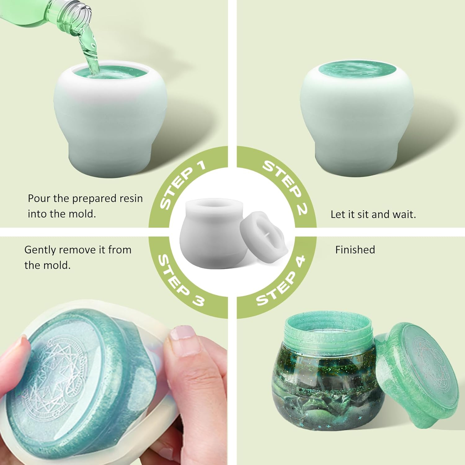 Jars Resin Molds with Lid, Epoxy Molds Silicone for Storage Bottle,Candle Holder
