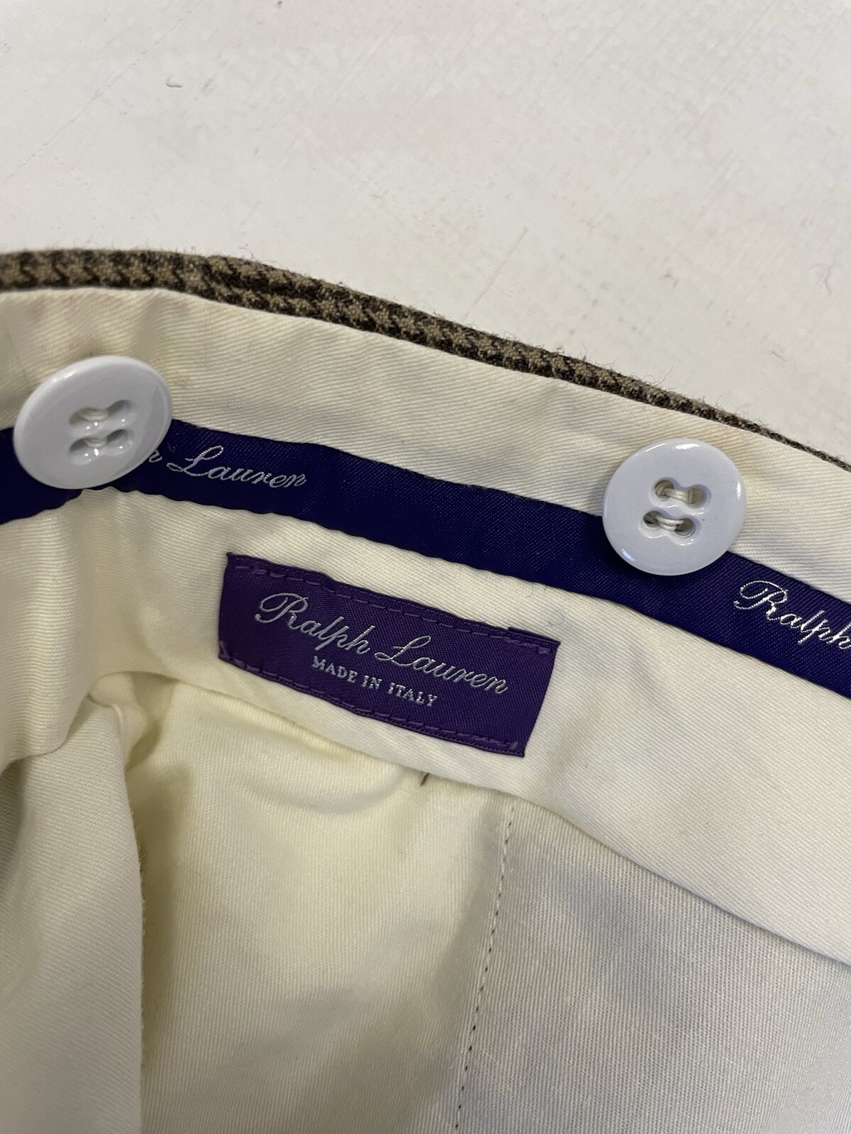 Ralph Lauren Purple Label Mini Check Flat Front Trouser in Tan Size 38 Italy