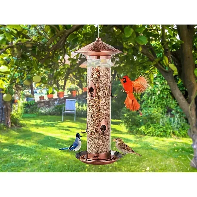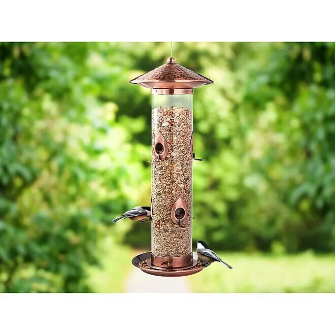 MEMBERS MARK 20 PREMIUM HAMMERED COPPER STAINLESS STEEL BIRD FEEDER W/ TRAY NEW