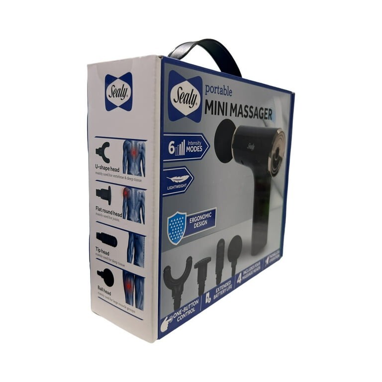 Sealy Handheld Deep Tissue Mini Massage Gun With Four Heads And Six Speeds