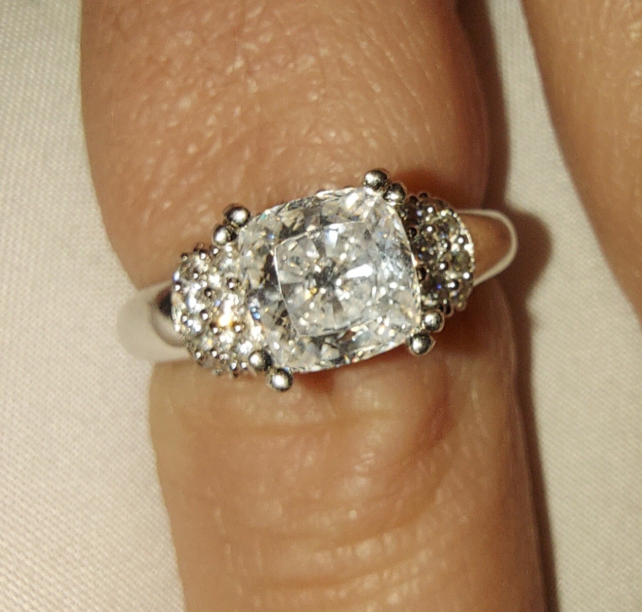 VTG 925 SS Cz Engagement Ring Square Center Stone With Cz Accents Sz 8 GUC