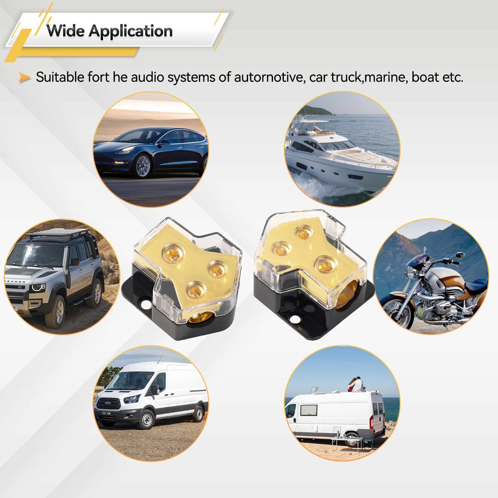 2x Car Audio Splitter Amp Distribution Power 0/2/4 Gauge In 4 / 6 / 8 Gauge Out.