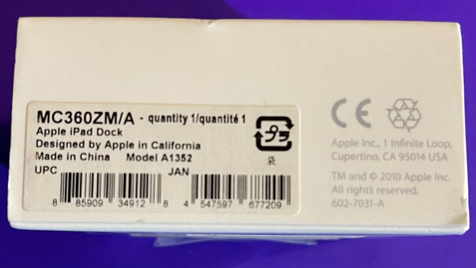 Genuine Apple iPad Dock Docking Station - MC940ZM/A - Model A1381 for iPad