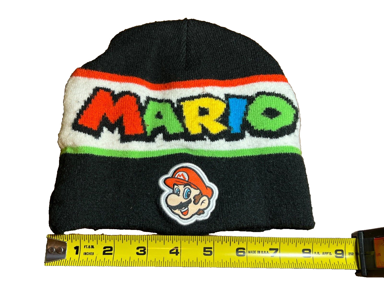 Super Mario Beanie Hat Black Logo Winter Knit One Size