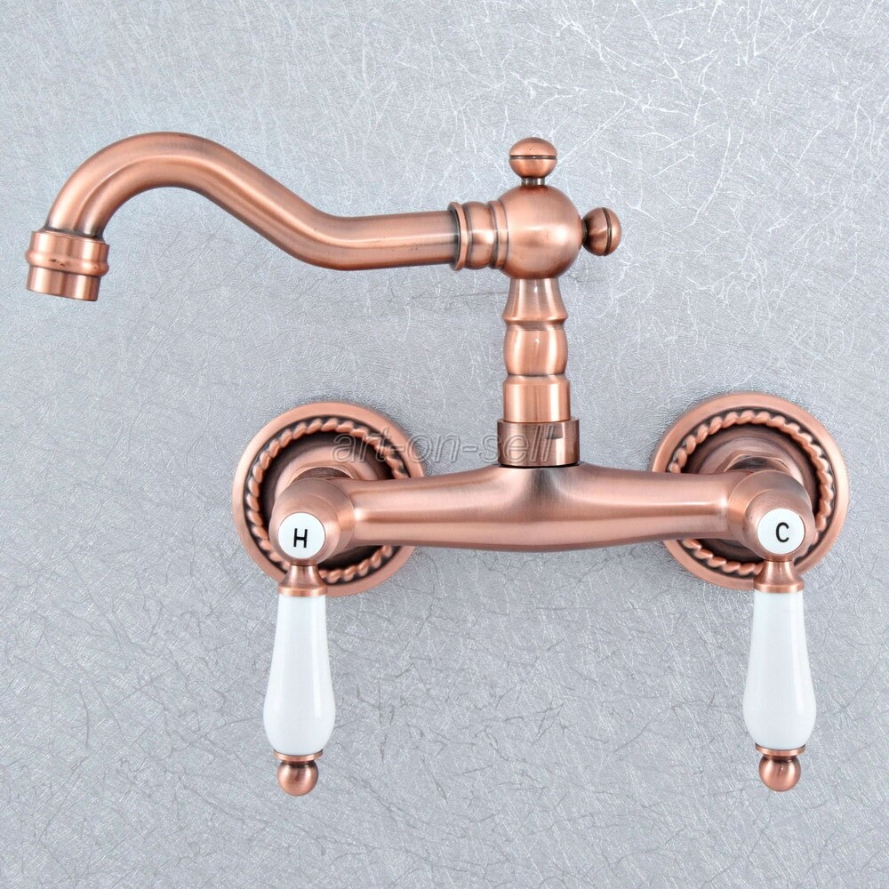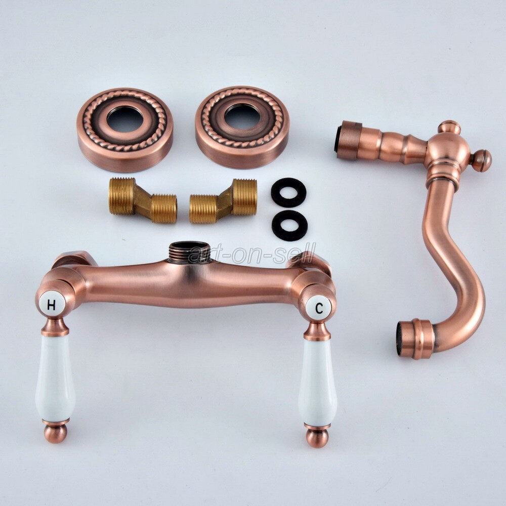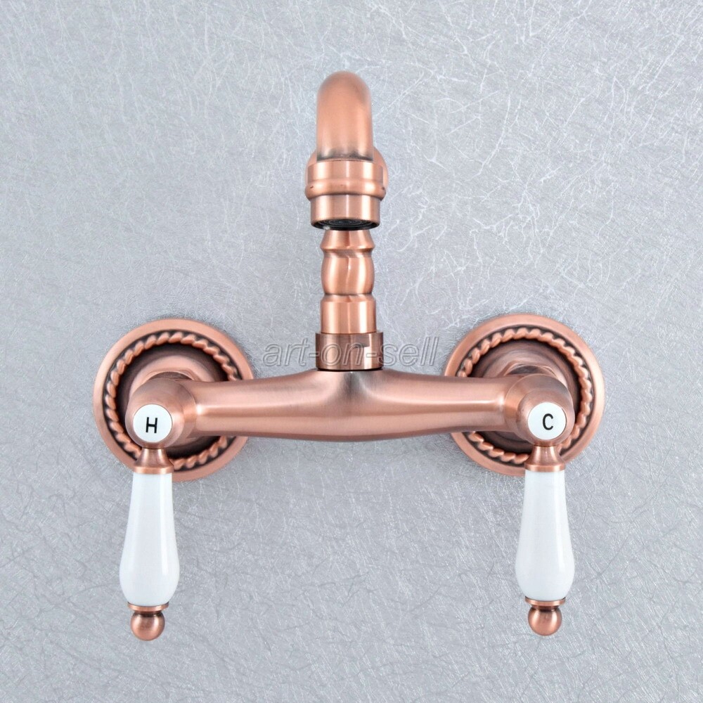 как выглядит Red Copper Dual Ceramic Handle Bathroom Basin Faucet Wall Mounted Mixer Tap фото