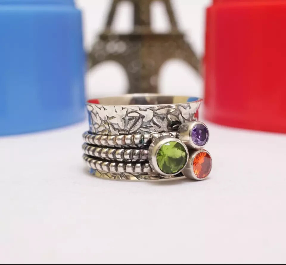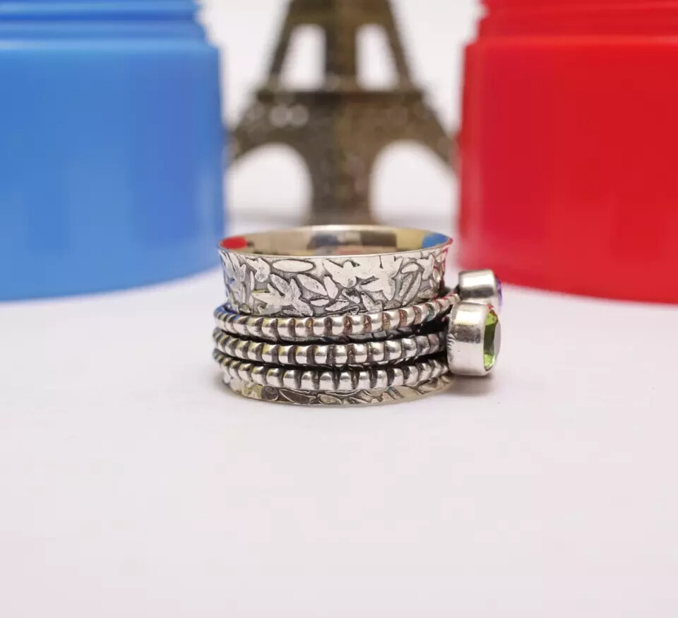 Peridot Ring Solid 925 Sterling Silver Spinner Ring Pretty Jewelry All Size MK