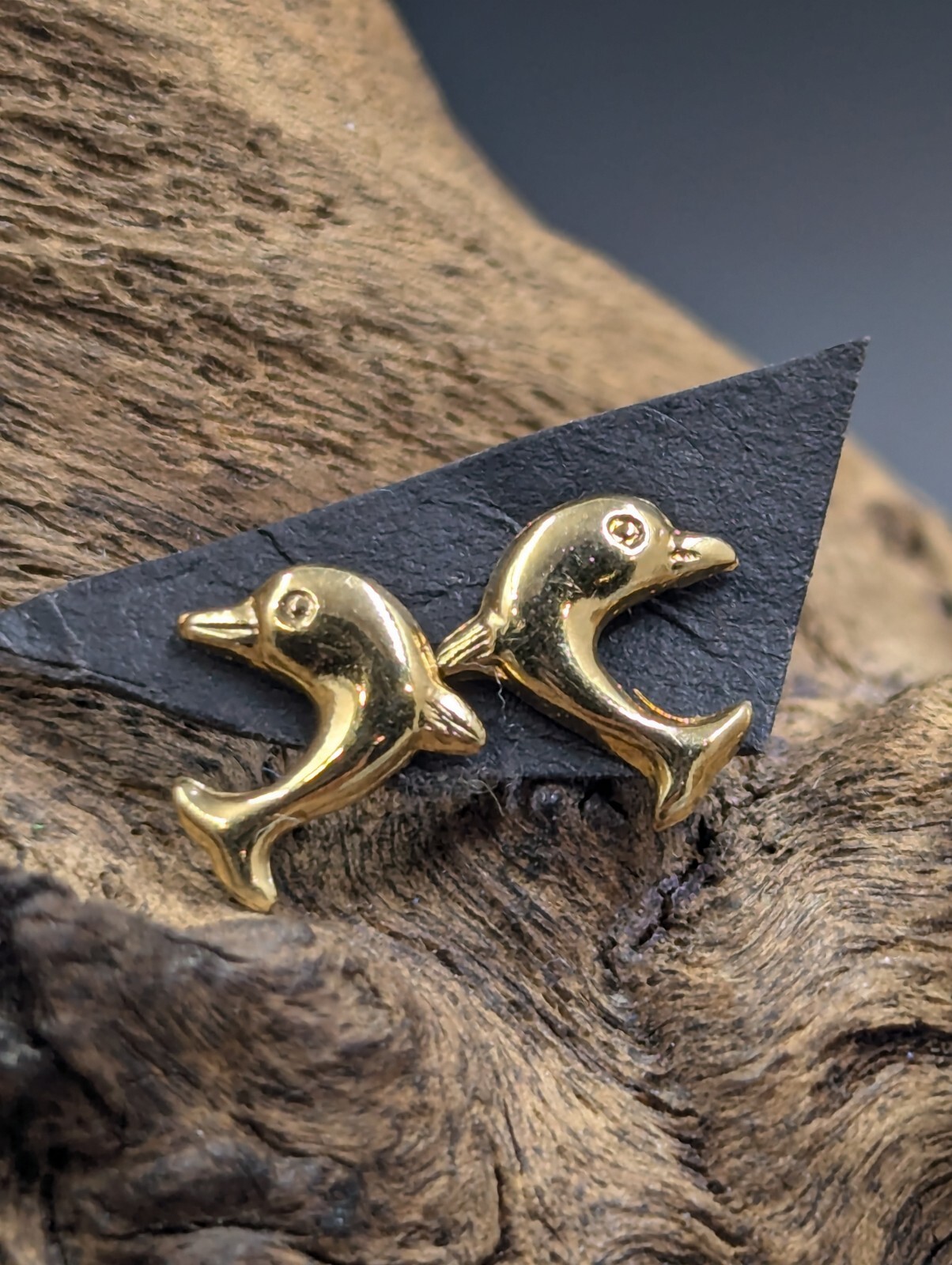NOS 14k Yellow Gold Dolphin Stud Earrings .32Gr Price por one Pair
