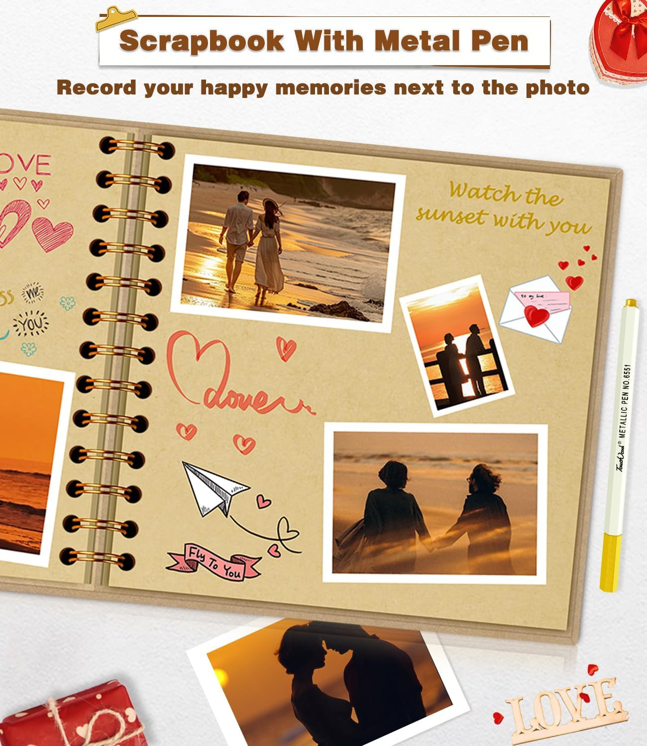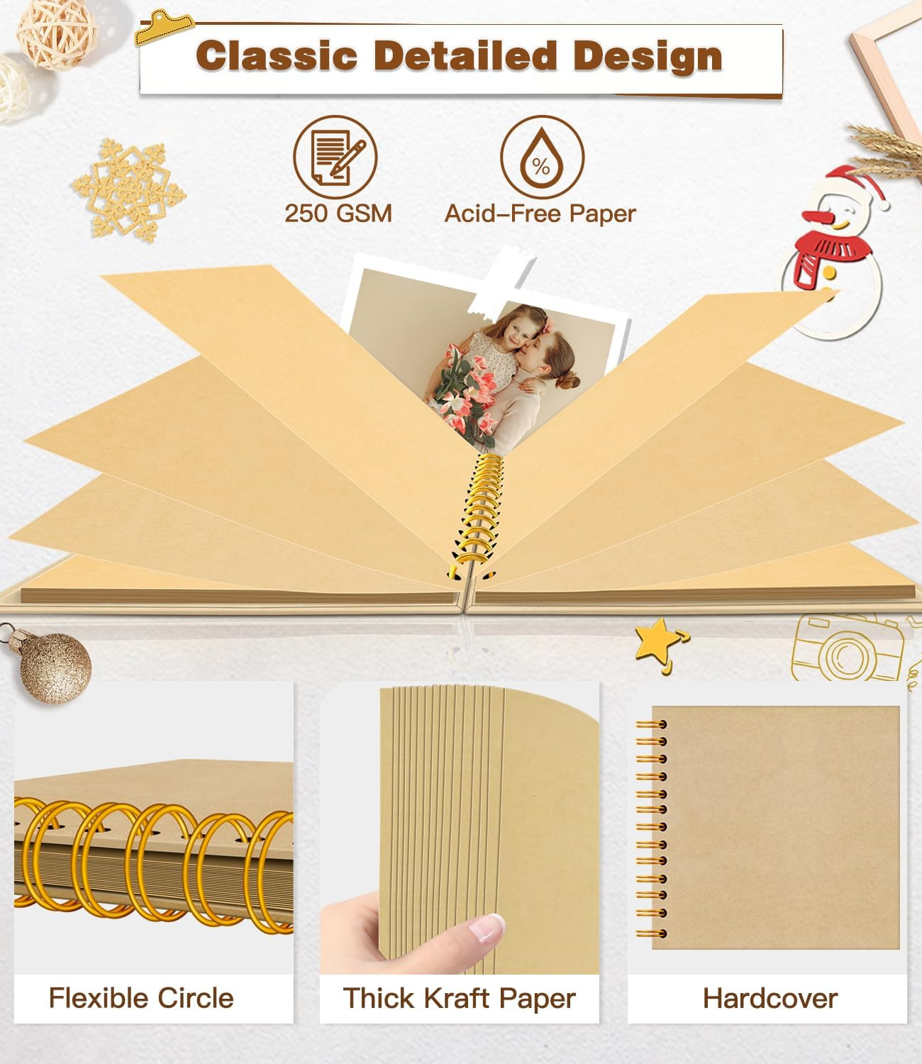 DIY Scrapbook Album, Hardcover Kraft 7X7 Inch 40 Pages Scrap Photo Album with Me