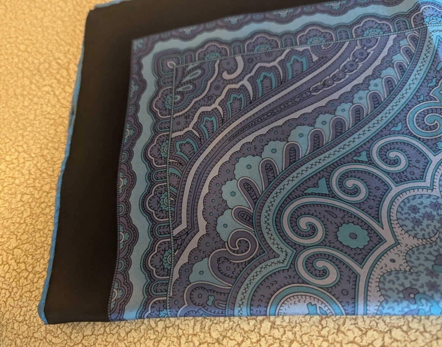 как выглядит MENS Silk Pocket Square, Blue Multi Scrolled Kashmir Print фото