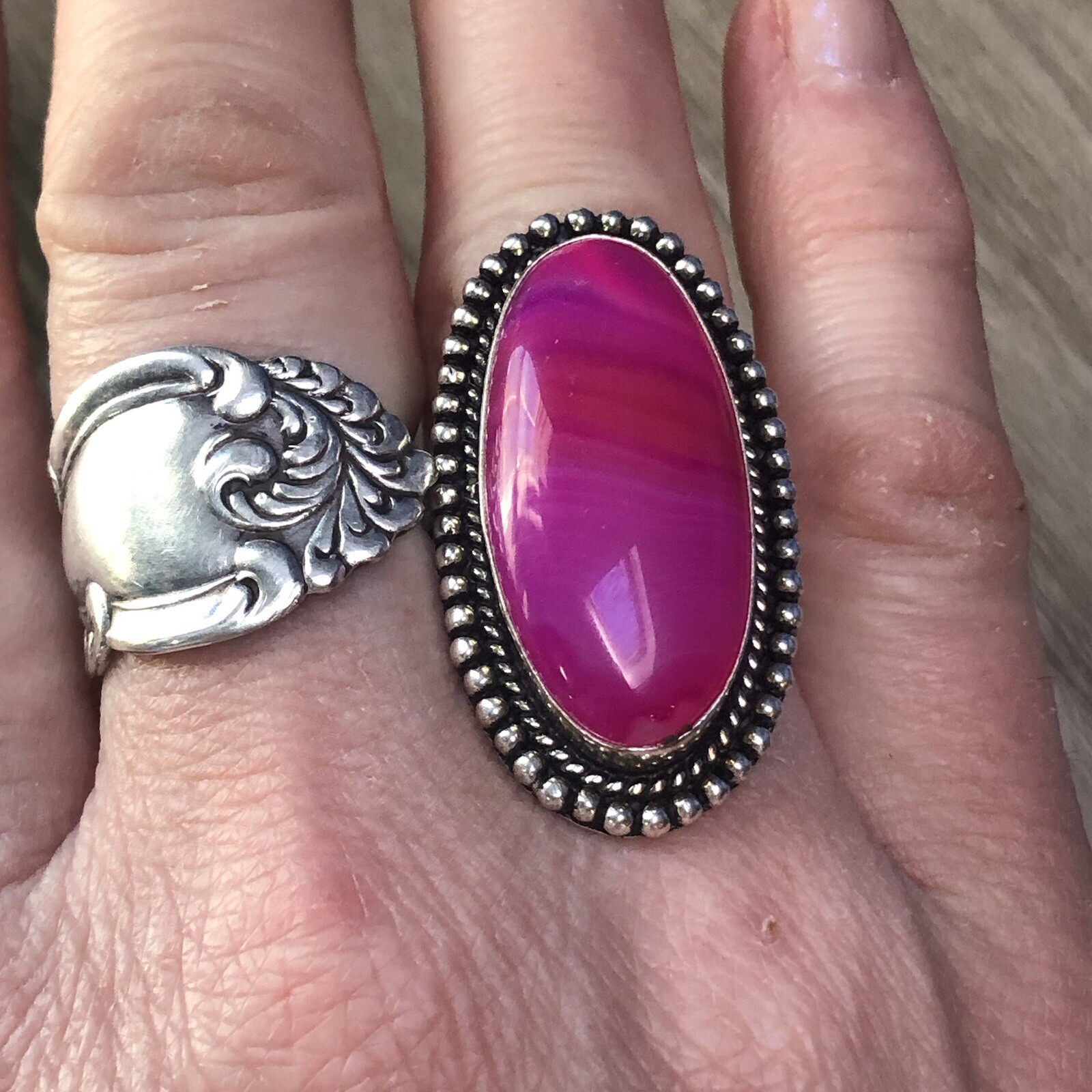 Pink Botswana agate Sterling Silver Ring 8.25