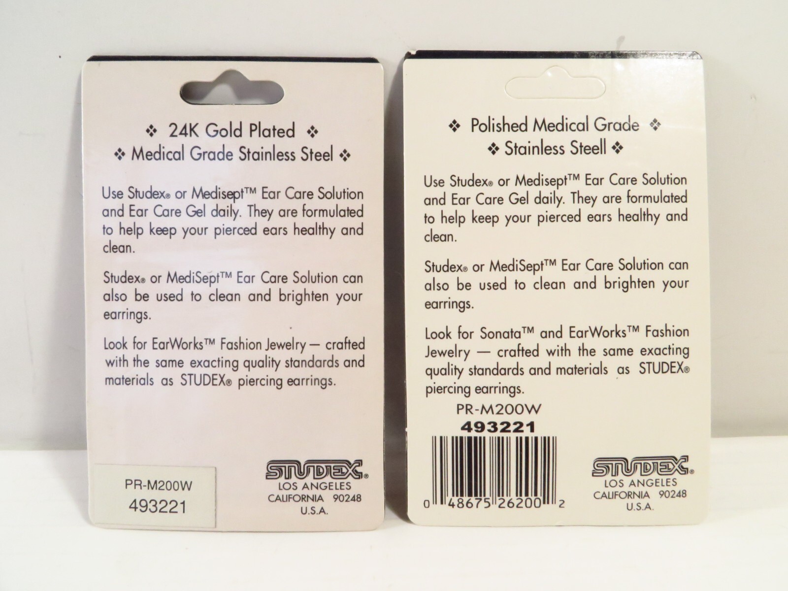 2 PK Studex Ear Piercing Earrings Polished Medica Grade, Mini S/S Ball