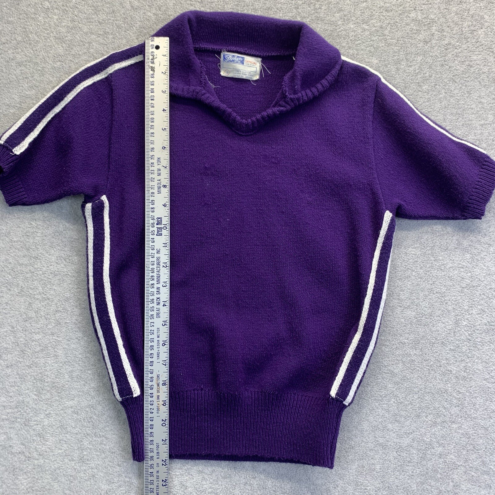 как выглядит Vintage Cheerleading Sweater Dehen Womens M Purple White Stripe Acrylic Knit фото