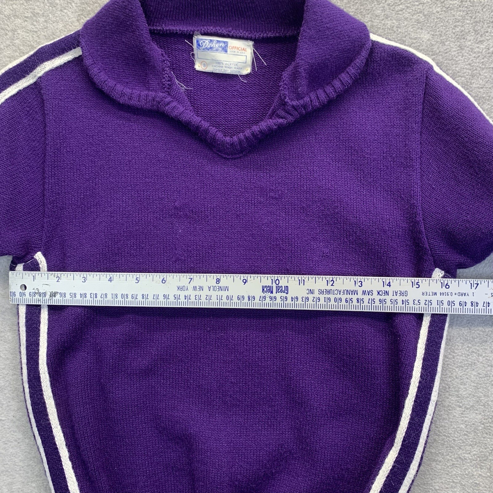 Vintage Cheerleading Sweater Dehen Womens M Purple White Stripe Acrylic Knit