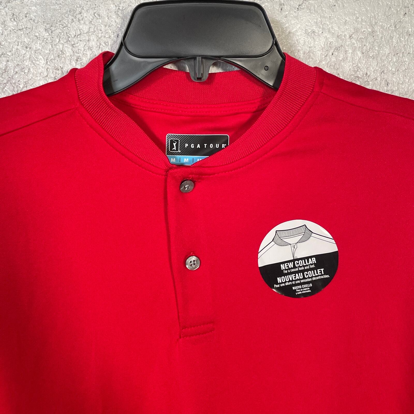 PGA TOUR Men s Pique Golf Polo With New Casual Collar red Medium