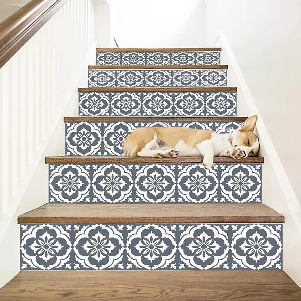 14PCS Moroccan Style Self-Adhesive Stair Riser Decals, Peel and Stick Stairca...