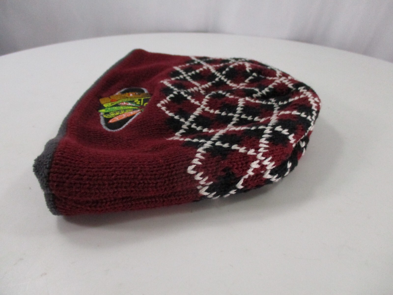 • OTH Chicago Blackhawks Hat Beanie Red White Pattern NHL Knit Uncuffed Winter Men