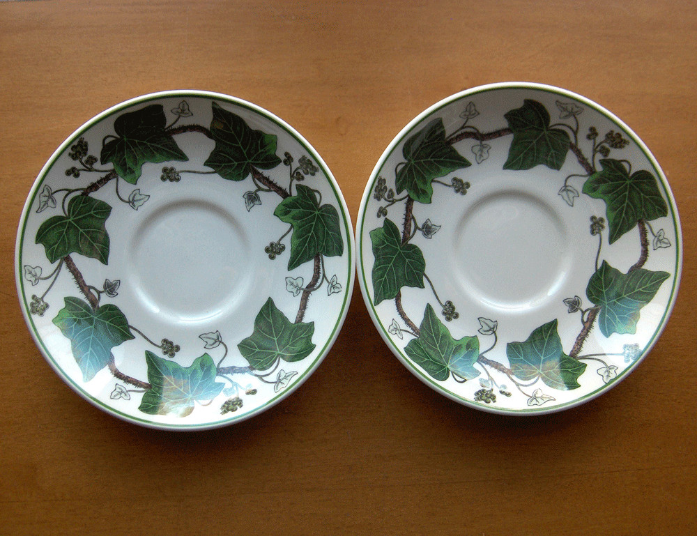 как выглядит Wedgwood Napoleon Ivy 2 cup saucer sets Queens Ware made in England Pristine фото