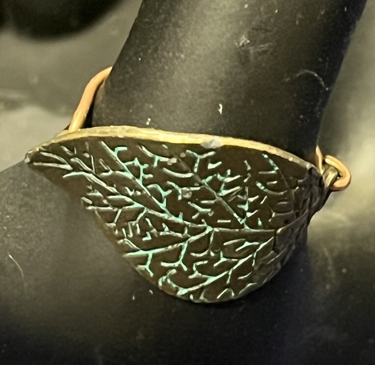 Handcrafted by Neb Artisan Copper Verdigree Leaf Wire Wrapped Ring Size 8.5