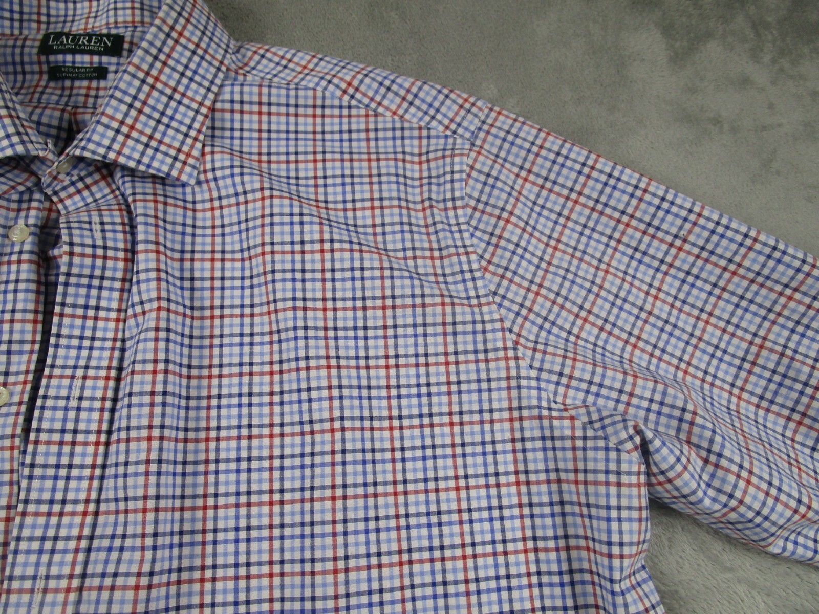 как выглядит Lauren Ralph Lauren Shirt Mens 18 Blue Checked Button Down Cotton фото