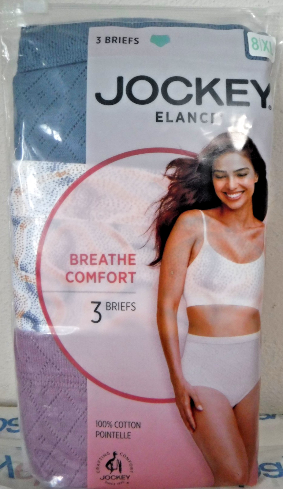 Jockey Elance Breathe 3 comfort Briefs 100 cotton Pointelle sz 8 Blue plum mix