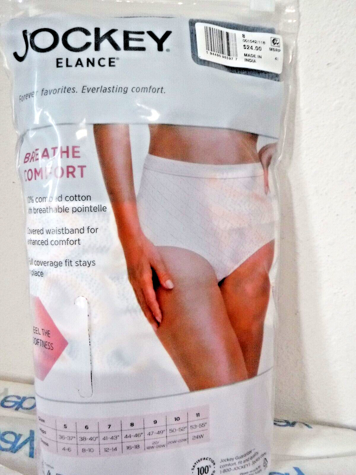 как выглядит Jockey Elance Breathe 3 comfort Briefs 100 cotton Pointelle sz 8 Blue plum mix фото